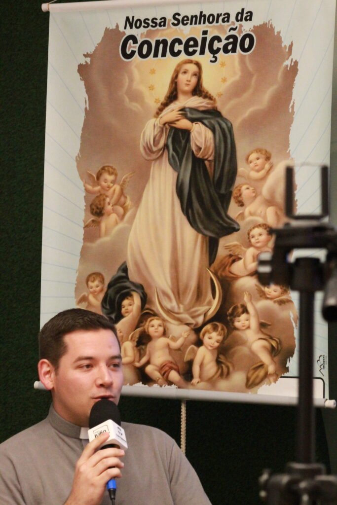 O padre Douglas realizou o lançamento do concurso para o Hino Oficial do Jubileu dos 150 anos da Paróquia.
