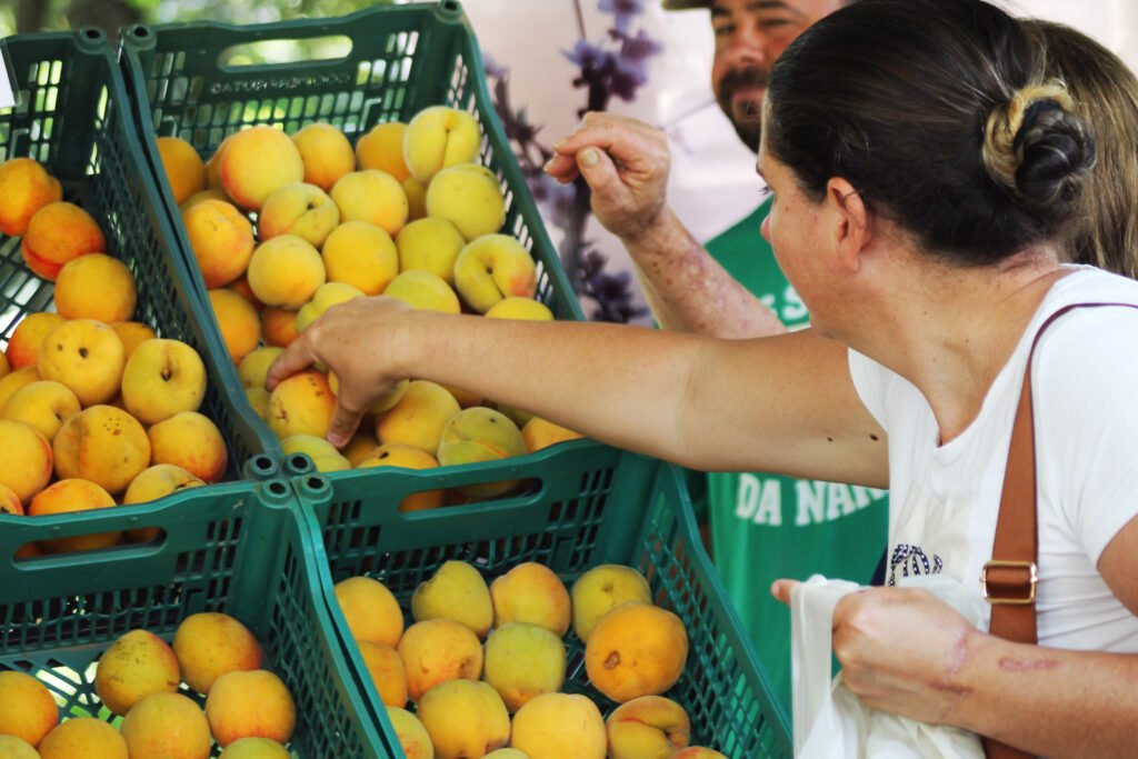 Começa feira de pêssegos da Nara Gonçalves; clima contribuiu para frutas ainda mais doces