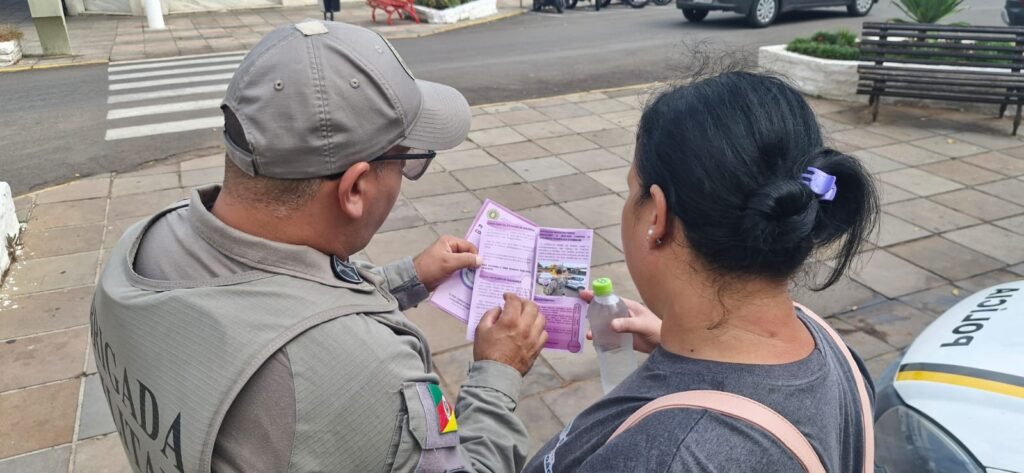 Na manhã desta terça-feira (24), a Brigada Militar, por meio da Patrulha Maria da Penha do 45º BPM, realizou uma ação preventiva em parceria com a Coordenadoria Municipal dos Direitos da Mulher de Santiago, na área central do município.