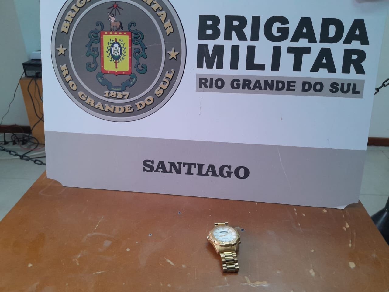Após contato com a vítima, esta reconheceu o relógio como sendo de sua propriedade. Questionado sobre a procedência do objeto, o indivíduo afirmou tê-lo encontrado no lixo.