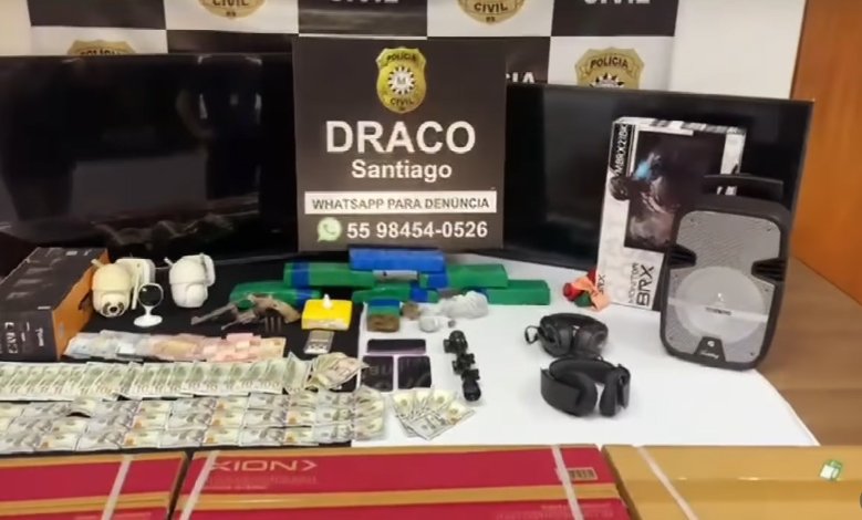 A Polícia Civil, através da DRACO Santiago e do efetivo da Operação Protetores das Fronteiras e Divisas, prendeu em flagrante duas mulheres, de 29 e 40 anos de idade, pelos crimes de Tráfico, Associação ao Tráfico e Posse de Arma de Fogo durante cumprimento de Mandado de Busca e Apreensão em uma residência do Bairro Vila Nova, em Santiago.