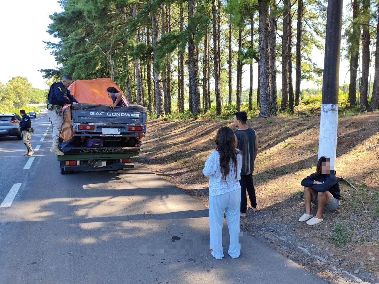 Na manhã desta terça-feira (3), durante a Operação Nacional de Fiscalização de Transporte de Veículos de Carga, a Polícia Rodoviária Federal encontrou três pessoas que estavam sendo transportadas na carroceria de um caminhão. A abordagem ocorreu na BR-287, em Santiago.