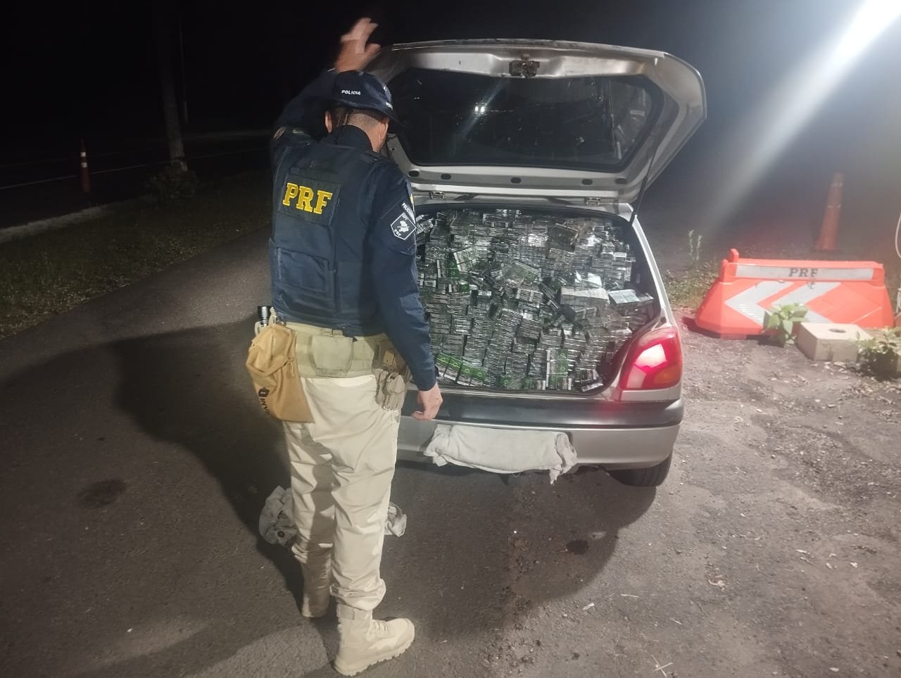 Durante operação de combate ao crime, os policiais rodoviários federais deram ordem de parada ao condutor de um veículo Fiesta com placas de Esteio/RS. Na abordagem, foi visualizado que o veículo estava carregado com cigarros. Ao todo, foram apreendidos, aproximadamente, 10 mil maços de cigarros de origem estrangeira, introduzidos ilegalmente no país.