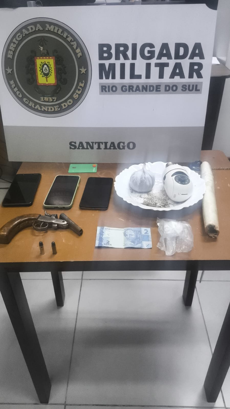 A Brigada Militar de Santiago, através da ROCAM, realizou uma ação durante o Plano Tático Operacional, que resultou na apreensão de drogas, arma de fogo e na prisão de um homem por tráfico de entorpecentes e porte ilegal de arma de fogo de uso permitido.