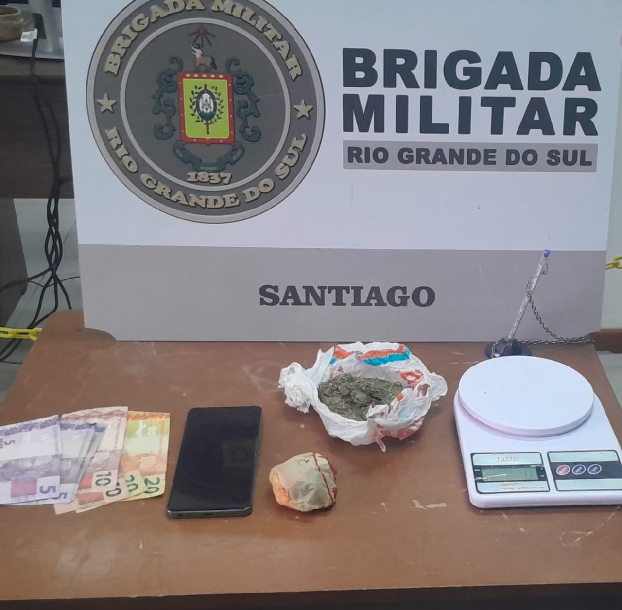 Na terça-feira (28), a Brigada Militar, por meio da Força Tática, durante ações de monitoramento, recebeu informações sobre uma pessoa que estaria realizando comércio de entorpecentes. Durante as diligências, a guarnição visualizou um jovem de 18 anos, com antecedentes criminais, que foi abordado.