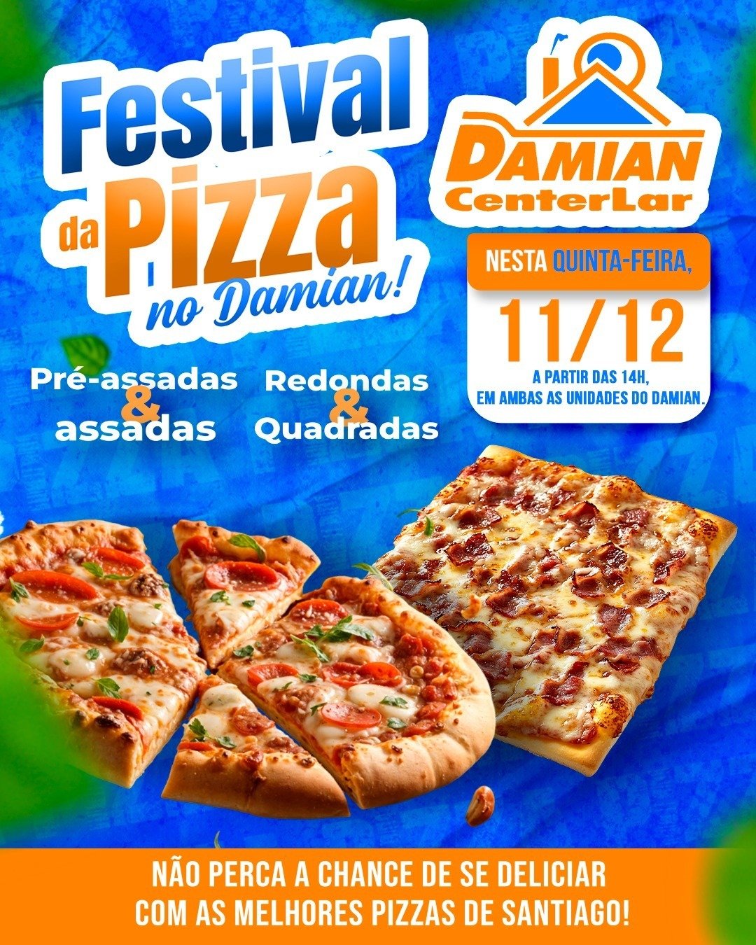 Você não pode perder o Festival de Pizzas do Damian. É a partir das 14h (redondas e quadradas).