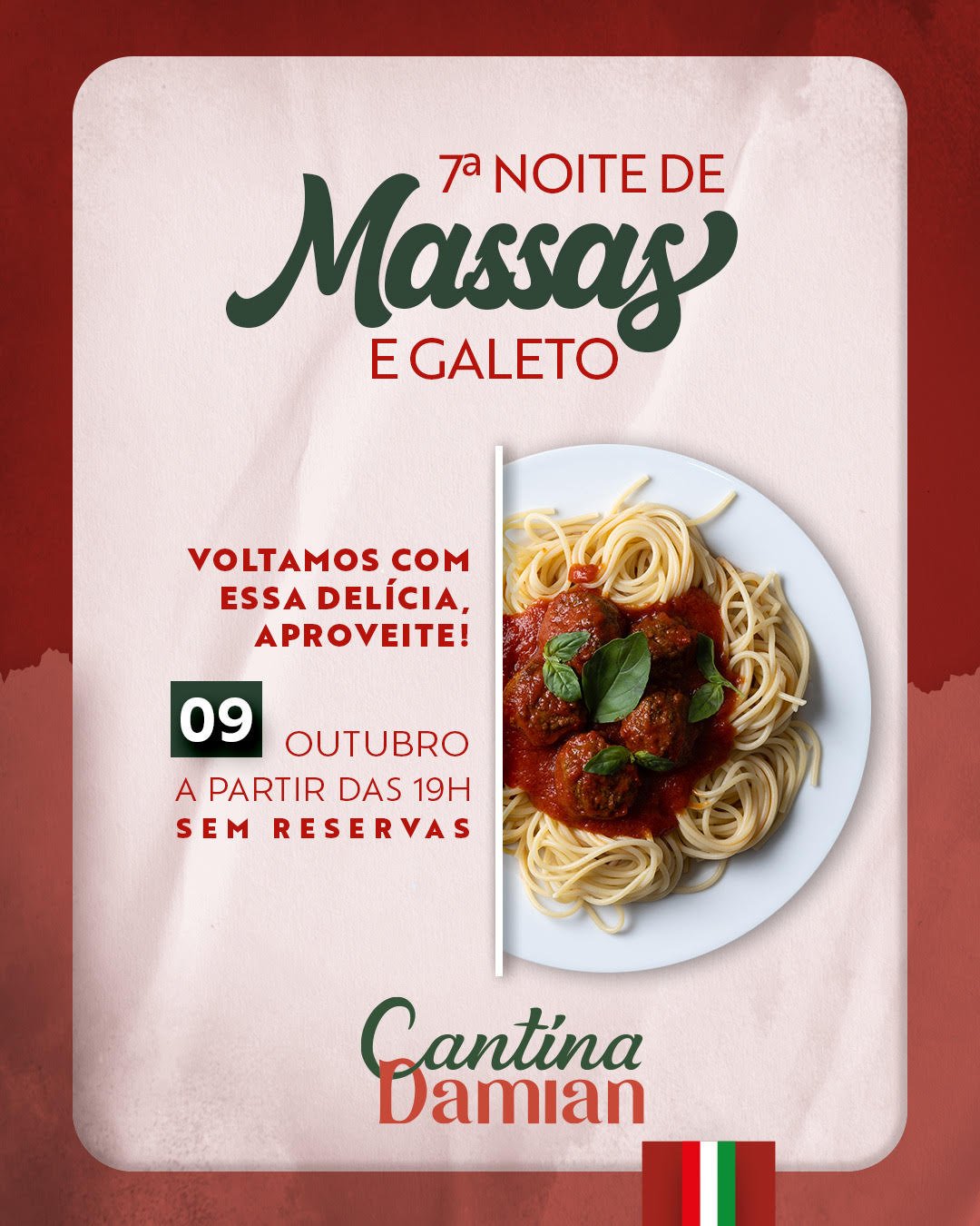 Nesta quinta-feira, tem a Noite de Massas na Cantina Damian!