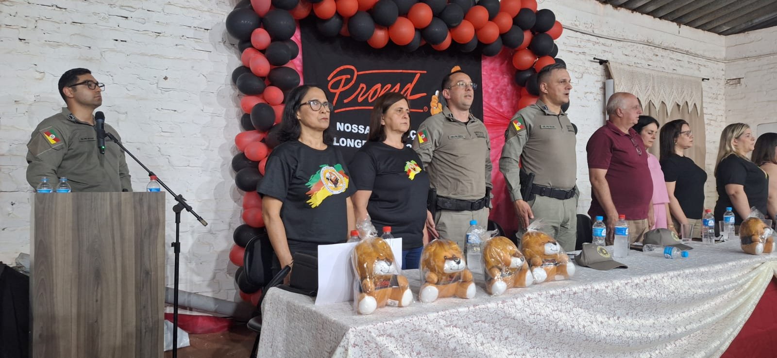O Sd PM Ediandro Martins Ferreira, instrutor Proerd, ministrou as atividades dos currículos “Proerd Kids” (1º e 4º anos) e “Caindo na Real” (5º e 7º anos) em quatro escolas do município totalizando 184 alunos formados entre crianças e adolescentes.
