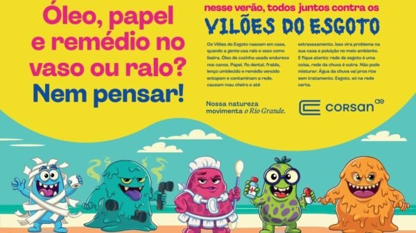 Geral Corsan convoca gaúchos a combater os “vilões do esgoto” A Corsan está convocando os gaúchos a combater os “Vilões do Esgoto”. O Projeto aposta em personagens lúdicos e ações educativas nas praias para... Rádio Santiago3 dias atrás